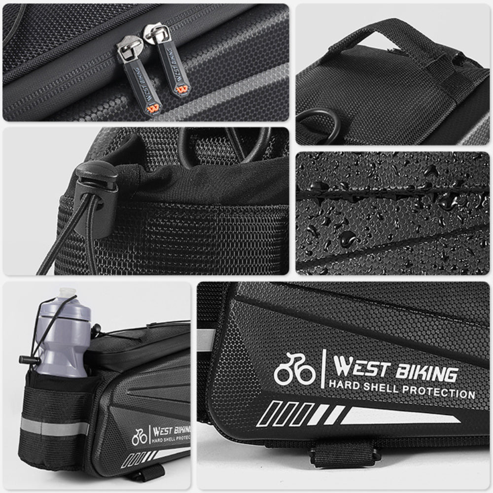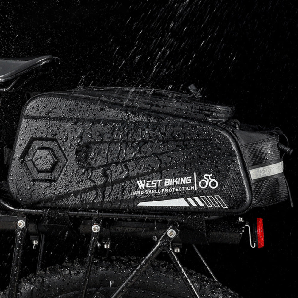 Reflektierendes Design: Die Rückseite der Fahrradgepäckträgertasche hat ein großes reflektierendes Gurtband, das nicht nur Ihre Sichtbarkeit erhöht, sondern auch Ihre Sicherheit beim Fahren in der Nacht gewährleistet. Der Aufhänger am Streifen kann auch ein Rücklicht halten.