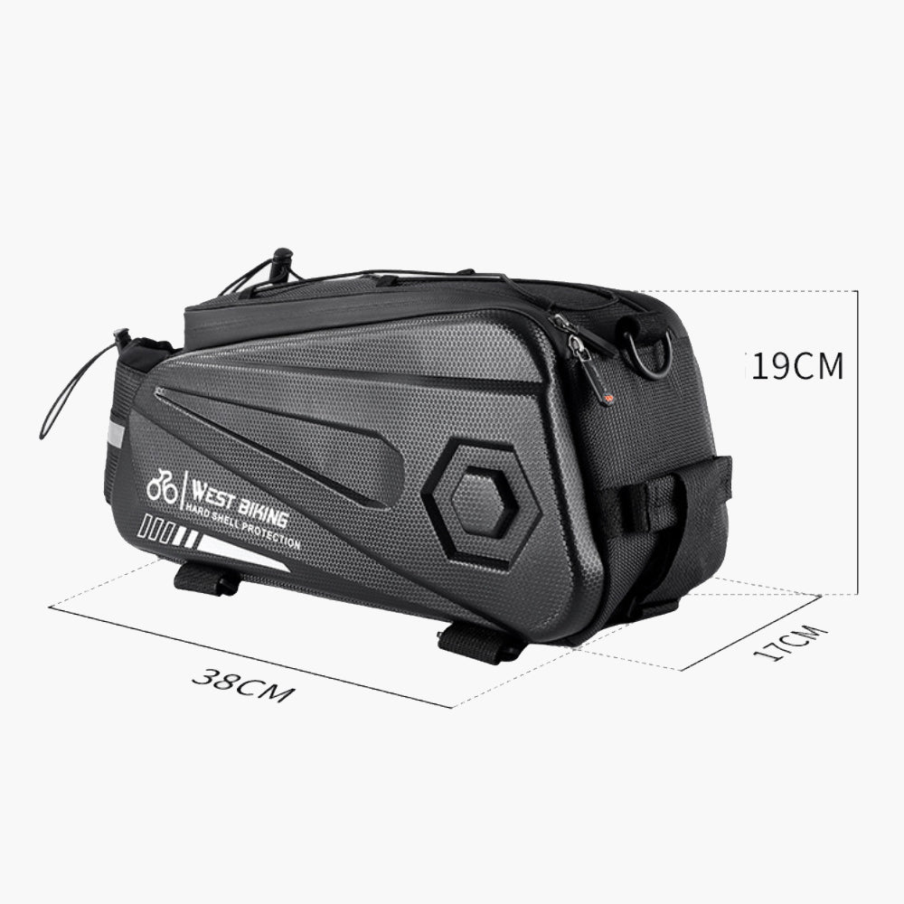 Großes Fassungsvermögen: Mit einem Fassungsvermögen von 8,6 l verfügt diese Fahrradgepäckträgertasche über ein Hauptfach mit 3 inneren Netztaschen und elastischen Kordeln. Ideal zum Transportieren von Fahrradjacke, Reparaturwerkzeugen, Reifenpumpe, Powerbank, Wasserflasche, Lebensmitteln, Snacks, Speisen, Getränken usw. (15 x 6,3 x 6,3 Zoll) (L x B x H)